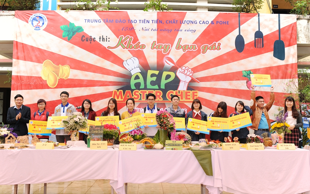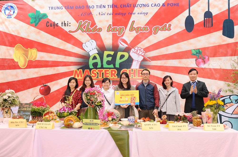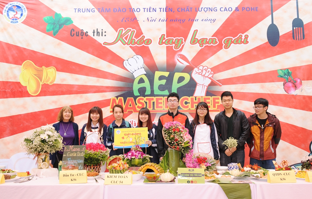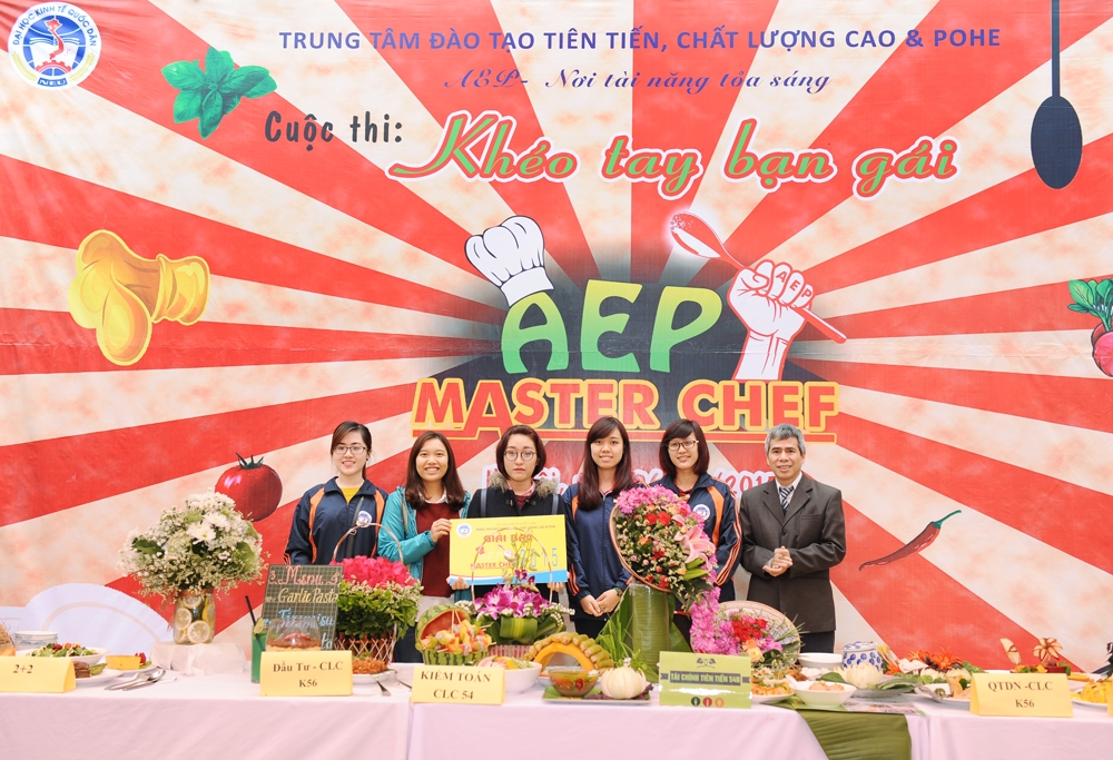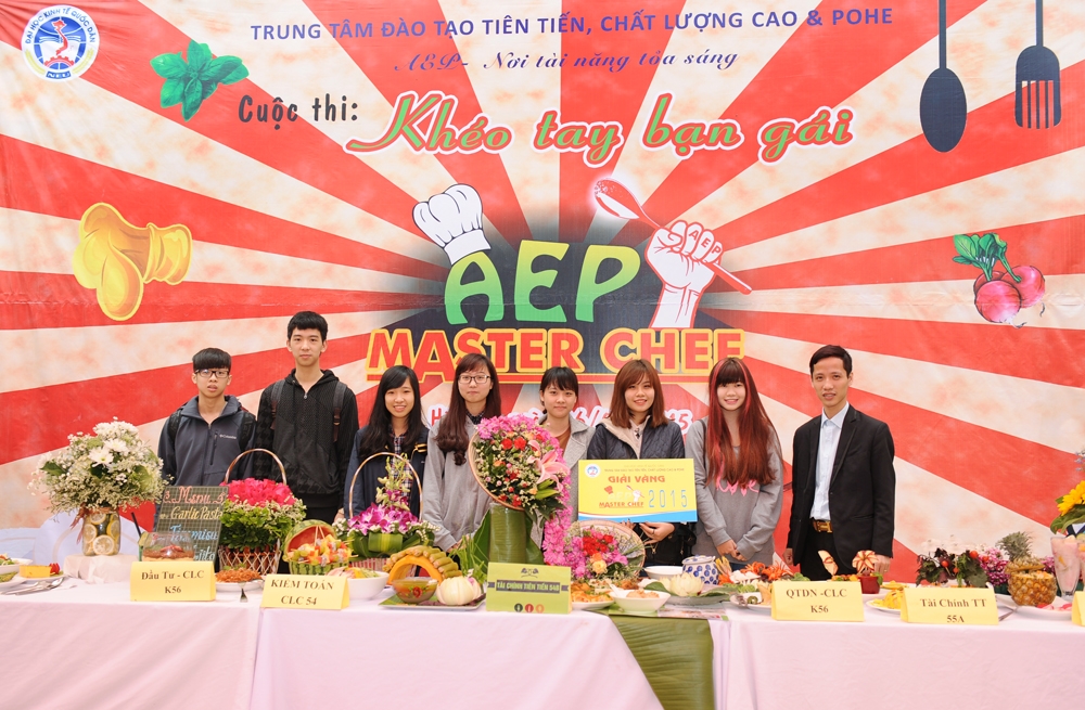 Hòa vào không khí tươi vui chào đón xuân mới và nhân ngày Quốc tế Phụ nữ 08/3, cũng nhằm tôn vinh nét đẹp của người phụ nữ, Trung tâm đào tạo Tiên tiến, Chất lượng cao & POHE đã tổ chức thành công cuộc thi “Khéo tay bạn gái” AEP Master Chef – 2015. Đây là cuộc thi được tổ chức thường niên dành riêng cho các bạn nữ sinh viên của Trung tâm. Cuộc thi không chỉ là món quà gửi tặng đến các bạn nữ sinh viên mà còn là cầu nối gắn kết tình cảm của các thành viên trong gia đình AEP thêm bền chặt, mang tới một không khí vui tươi mở đầu cho chuỗi hoạt động chào mừng ngày thành lập Đoàn thanh niên Cộng sản Hồ Chí Minh và hướng tới kỷ niệm 60 năm ngày thành lập trường Đại học Kinh tế Quốc dân.