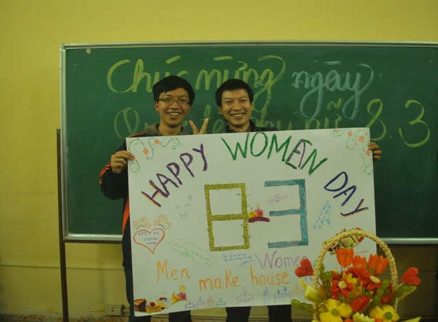 Chương trình được tổ chức hết sức thân mật, tình cảm và ấm áp. Hướng về  tinh thần ngày 8/3, các hoạt động trong chương trình nhằm tôn vinh vai trò và vẻ đẹp của người phụ nữ, qua đó là những lời cám ơn, những điều chúc thật tốt đẹp. Sau phần trình bày ca khúc “Lemon Tree” rất dễ thương của lớp Ngữ Âm A, cuộc thi “Khéo tay hay làm” độc đáo yêu cầu sự sáng tạo và khả năng thuyết trình của các học viên đã thực sự gây được ấn tượng. Mỗi lớp sẽ được Trung tâm hỗ trợ một khoản kinh phí nhất định để chuẩn bị một sản phẩm với chủ đề là Ngày Quốc tế Phụ nữ 8/3. Lớp Ngữ Âm A trổ tài cắm hoa trên chính chiếc giầy cao gót với thông điệp thật ý nghĩa. Lớp Giao tiếp A lại khuấy động bầu không khí chương trình với phần thuyết trình kết hợp ca nhạc cho món Phở cuốn. Không chỉ 1 mà là 3 sản phẩm, lớp Ngữ pháp B với bánh kem, giỏ hoa quả đẹp mắt và tấm thiệp chúc mừng khổng lồ nhận được không ít sự thán phục và tâm đắc.