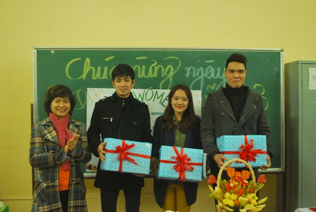 Tập thể học viên tặng hoa chúc mừng các cô giáo nhân ngày Quốc tế Phụ nữ 8/3