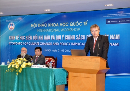 Ngày 01 tháng 3 năm 2013, tại Trường Đại học Kinh tế Quốc dân, với tài trợ của Ausaid Alumni (Tổ chức các cựu học viên tại Australia) đã tổ chức thành công Hội thảo Khoa học Quốc tế “Kinh tế học biến đổi khí hậu và gợi ý chính sách đối với Việt Nam”. Hơn 160 đại biểu đại diện các Bộ ban ngành: Ban Kinh tế Trung ương, Hội đồng Lý luận Trung ương, Bộ Kế hoạch và Đầu tư, Bộ Công Thương, các trường đại học, Đảng ủy, BGH, Hội đồng khoa học và Đào tạo, đại diện lãnh đạo các đơn vị trực thuộc trường, các bộ môn đã tới dự. Tới dự Hội thảo có TS. Bùi Văn Thạch, Phó Trưởng ban Kinh tế Trung ương, các đại biểu quốc tế đến từ Chương trình Phát triển Liên hợp quốc UNDP, Cơ quan Hợp tác phát triển quốc tế của Hàn Quốc KOICA, tổ chức CARE International….
