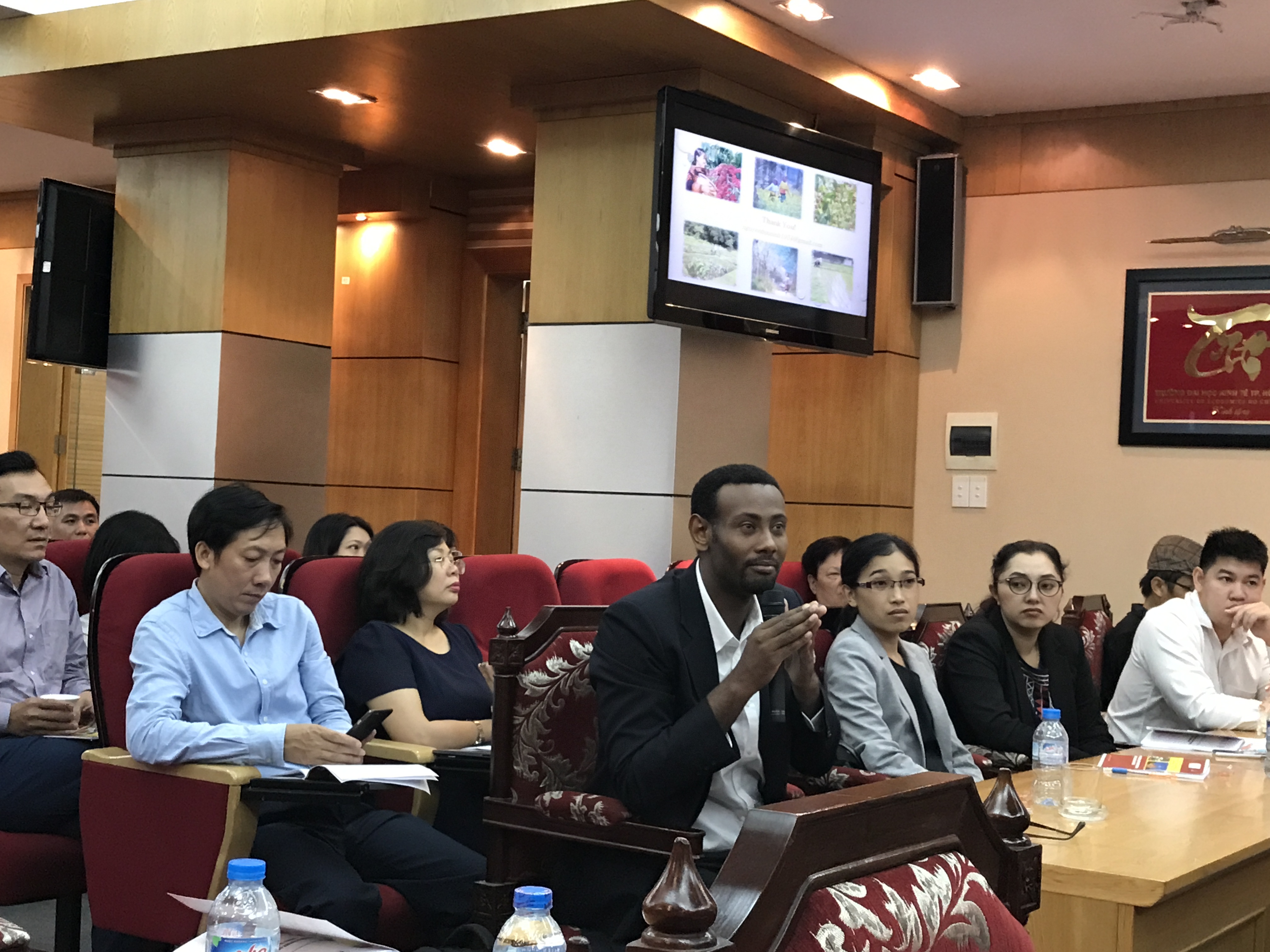 Tiếp đó, TS. Nguyễn Hữu Ninh – Chủ tịch Hội đồng quản lý Trung tâm nghiên cứu giáo dục, môi trường và phát triển thuộc Liên hiệp các hội khoa học và kỹ thuật Việt Nam, đồng tác giả công trình nghiên cứu đạt Giải thưởng Nobel Hòa bình của Ủy ban Liên Chính phủ về Biến đổi Khí hậu Liên Hợp Quốc năm 2007, đã có tham luận định hướng rất ấn tượng về “Phát triển nông nghiệp bền vững, thông minh với biến đổi khí hậu: phân tích từ quan điểm chuỗi cung ứng và hợp tác quốc tế”.