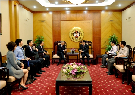 GS.TS.Trần Thọ Đạt – Phó Hiệu trưởng nhà trường tiếp ngoại giao đại diện ADB trước khi diễn ra Hội thảo