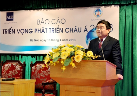 Hàng năm, Văn phòng Cơ quan đại diện Thường trú ADB tại Việt Nam tổ chức Họp báo công bố báo cáo Triển vọng Phát triển Châu Á. Đây là ấn phẩm quan trọng nhất của ADB vào tháng 4. Báo cáo Triển vọng phát triển Châu Á đưa ra những đánh giá của ADB về tình hình kinh tế hiện tại cũng như các dự báo của ADB về triển vọng phát triển kinh tế trong năm tiếp theo; đặc biệt, báo cáo có riêng một chương về Việt Nam. Năm nay, Văn phòng ADB tại Việt Nam tiếp tục phối hợp với trường Đại học Kinh tế Quốc dân tổ chức buổi Tọa đàm về Báo cáo triển vọng phát triển Châu Á vào ngày 16 tháng 4 năm 2013 tại Phòng Họp A – Gác 2 Nhà 10.