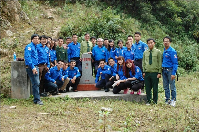 Đoàn công tác chụp anh lưu niệm tại Cột mốc Biên giới