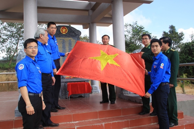 Đồn Biên phòng tặng cờ tổquốc cho Tuổi trẻ nhà trường