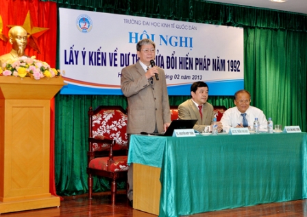Thực hiện Quyết định 442/QĐ-BGD & ĐT ngày 01 tháng 02 năm 2013 của Bộ trưởng Bộ Giáo dục và Đào tạo về việc ban hành Kế hoạch của Bộ Giáo dục và Đào tạo về việc tổ chức lấy ý kiến về Dự thảo sửa đổi Hiến pháp năm 1992 của nước ta, Trường ĐHKTQD đã thông báo kế hoạch và tổ chức lấy ý kiến của cán bộ, công chức, viên chức ở các đơn vị cơ sở; và ngày 28 tháng 02 năm 2013, tại G2.N10 Nhà trường đã tổ chức Hội nghị lấy ý kiến về dự thảo sửa đổi Hiến pháp năm 1992.