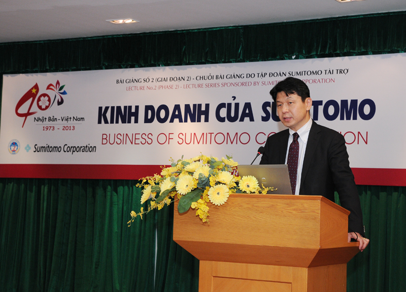 Theo thỏa thuận hợp tác giữa Trường Đại học Kinh tế Quốc dân và Tập đoàn Sumitomo – Nhật Bản ký ngày 01 tháng 11 năm 2012, hàng năm Tập đoàn Sumitomo sẽ tổ chức 2 bài giảng/ năm về lĩnh vực quản trị kinh doanh cho sinh viên của Đại học Kinh tế Quốc dân; và để tiếp tục thực hiện thỏa thuận hợp tác này, sáng nay, ngày 24 tháng 4 năm 2013, tại G2.N10 trường ĐHKTQD đã diễn ra Bài giảng số 2, giai đoạn 2 của Tập đoàn Sumitomo – Nhật Bản với chủ đề "Chiến lược kinh doanh của Tập đoàn Sumitomo".