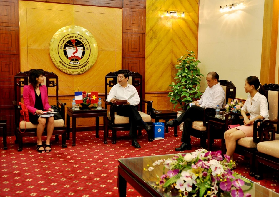 Trong buổi làm việc, GS.TS. Trần Thọ Đạt đã thay mặt Trường Đại học Kinh tế Quốc dân giới thiệu khái quát về đội ngũ cán bộ, các chương trình học và các hoạt động nghiên cứu của Trường. Hai bên cũng đã bàn về các vấn đề hợp tác đào tạo trong tương lai giữa hai Trường trong các lĩnh vực kinh tế, kinh doanh và quản lý, hợp tác nghiên cứu về nền kinh tế châu Á nói chung và Việt Nam nói riêng. Dự kiến bước đầu hợp tác sẽ là chương trình trao đổi sinh viên và giảng viên.