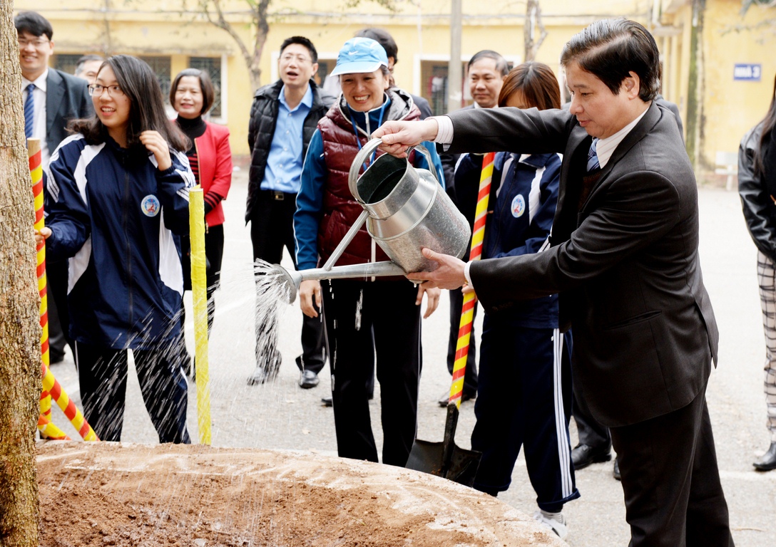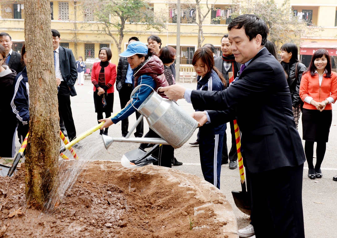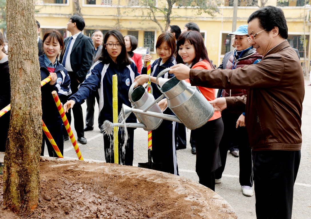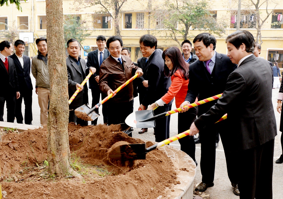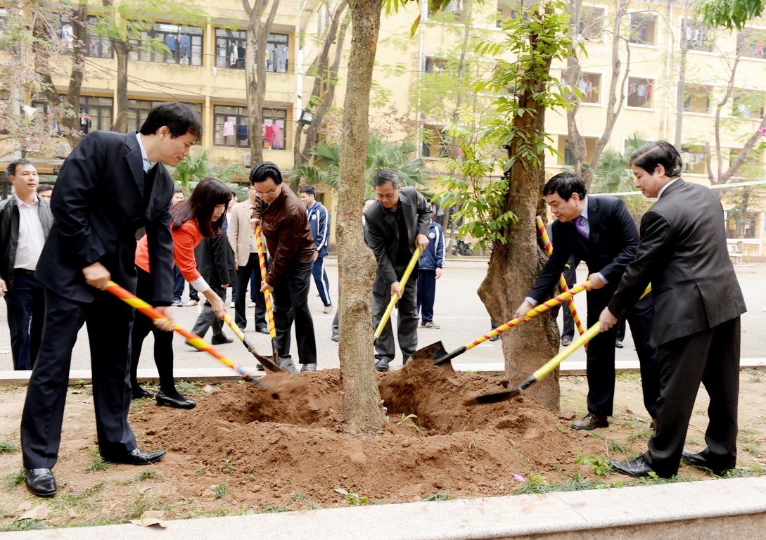 Trường trồng cây nhân dịp xuân mới Bính Thân