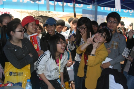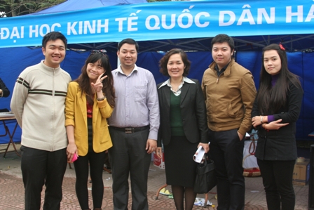 Thời tiết sáng 09/03/2012 ở Hạ Long thật đẹp, không khí trong lành càng tạo hứng khởi cho đội tư vấn tuyển sinh chúng tôi và dự báo một buổi tư vấn tuyển sinh tốt đẹp. Hơn 5.000 học sinh (HS) đến từ 8 trường THPT đã tập trung về trường THPT Hòn Gai (TP.Hạ Long, tỉnh Quảng Ninh) để tham gia chương trình Tư vấn mùa thi 2012. 8 giờ sáng, chương trình tư vấn nhóm chưa bắt đầu nhưng tại gian trại của chúng tôi đã có rất đông các em học sinh quan tâm đến thông tin tuyển sinh của Trường Đại học Kinh tế Quốc dân nói chung và của Chương trình Cử nhân Quốc tế nói riêng. Không khi của gian trại thực sự nóng lên, khi các tư vấn viên của chúng tôi tổ chức những trò chơi trúng thưởng thú vị dành cho các em học sinh. Bằng sự hiểu biết về chương trình IBD, rất nhiều em học sinh đã nhận được những phần quà hấp dẫn của Chương trình. Dù đã chuẩn bị trước cho chuyến đi này rất nhiều tài liệu của Chương trình như từ rơi, báo Safari, sổ tay, bút chì, đĩa tài liệu, bookmark… nhưng chỉ trong vòng hơn 1 tiếng đồng hồ toàn bộ những sản phẩm trên đã được các em học sinh đem về nhà với tâm trạng háo hức và vui sướng. Sự chuyên nghiệp của các em tư vấn viên đã đem đến cho các em học sinh một nét nhìn mới về các anh chị sinh viên Chương trình Cử nhân Quốc tế. Biết đâu trong số các em học sinh ấy cũng đang có rất nhiều người ao ước được trở thành những sinh viên năng động, sáng tạo như thế!