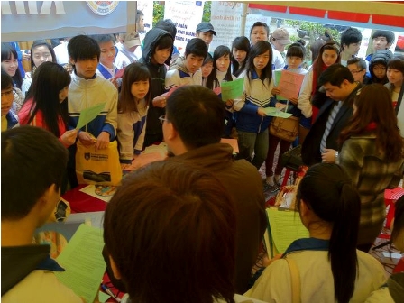 Chuyến hành trình tư vấn tuyển sinh tại Quảng Ninh thành công ngoài sức tưởng tượng. Tạm biệt Quảng Ninh, đội tư vấn tuyển sinh IBD lại tiếp tục cuộc hành trình với điểm đến tiếp theo là thành phố Thanh Hóa. Một lần nữa các cán bộ Chương trình IBD cùng với đội tư vấn viên đã chuẩn bị hết sức kỹ càng với số lượng tờ rơi, ấn phẩm (báo Safari, bookmark, sổ tay..) gấp đôi so với chuyến đi trước. Và quả thật không phụ lòng mong đợi của chúng tôi, hoạt động tư vấn tuyển sinh năm nay đã thu hút được đông đảo sự quan tâm từ phía học sinh và gia đình cũng như từ các cơ quan thông tấn xã địa phương.