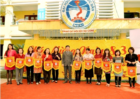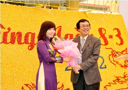 GS.TS Hiệu trưởng Nguyễn Văn Nam tặng hoa, chúc mừng chị em nhân ngày Quốc tế Phụ nữ 8/3 |