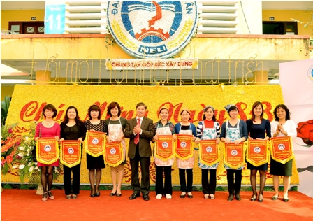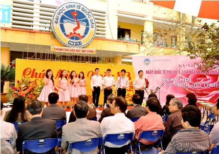 Chào mừng 102 năm Ngày Quốc tế Phụ nữ 8/3 và Kỷ niệm 1972 năm cuộc Khởi nghĩa Hai Bà Trưng, sáng ngày 7 tháng 3 năm 2012, tại sân của Trung tâm Dịch vụ Hỗ trợ đào tạo đã tưng bừng diễn ra “Ngày hội nữ công gia chánh” của nữ cán bộ, giáo viên, công nhân viên và sinh viên Trường ĐHKTQD. Đây là ngày hội được tổ chức nhằm tôn vinh và biết ơn những người phụ nữ, những người mẹ, người chị, người em, người con gái đã và đang ngày đêm đóng góp sức mình vào công cuộc xây dựng đất nước và cuộc sống gia đình, đặc biệt là những cô giáo, nữ cán bộ, công chức đang miệt mài cống hiến cho sự nghiệp giáo dục nước nhà nói chung và ngôi nhà Kinh tế quốc dân nói riêng.