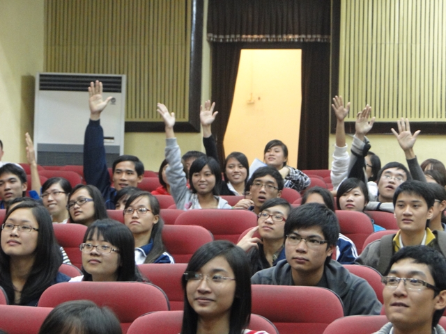 Sinh viên tham gia sôi nổi đối thoại với khách mời |