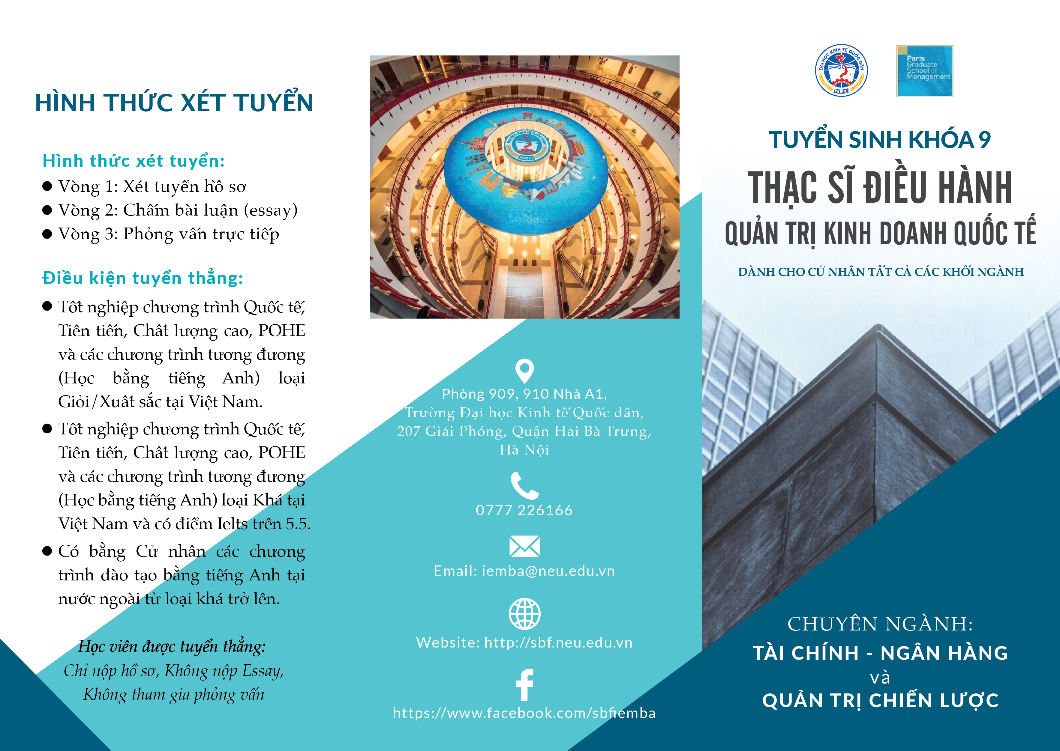 Đại học Quản trị Paris (PGSM) và Đại học Kinh tế Quốc dân (NEU) tiếp tục tuyển sinh Thạc sỹ Điều hành Quản trị Kinh doanh Quốc tế (IEMBA) khóa 9: