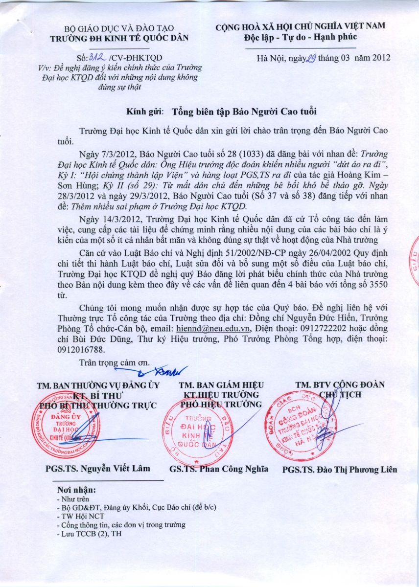 29/03/2012 2012-03-29 0:00Văn bản kiến nghị Báo Người Cao tuổi đăng ý kiến của Trường Đại học KTQD