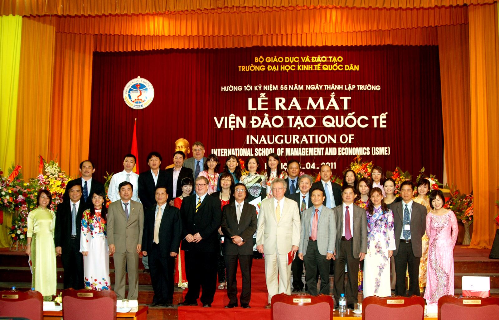 Lãnh đạo trường, đối tác và cán bộ đơn vị trong ngày ra mắt Viện Đào tạo quốc tế