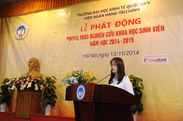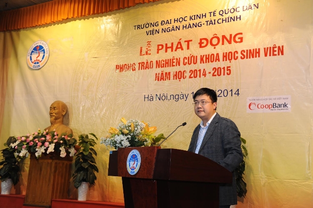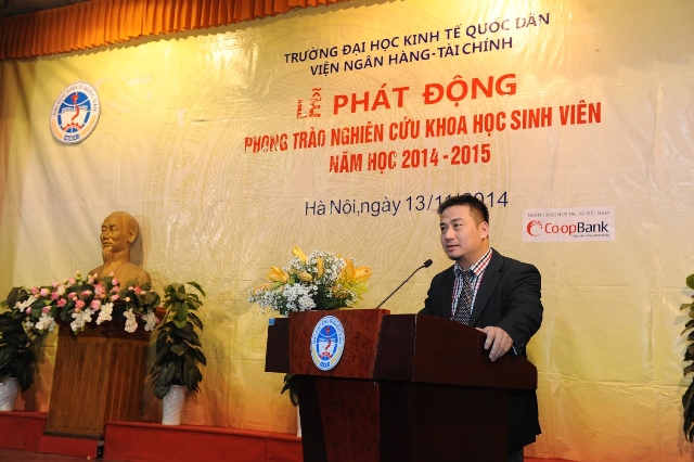 Thực hiện Chương trình công tác năm học 2014-2015 của Ban Chấp hành Đoàn trường cùng Công văn số 32/TN của Đoàn trường về việc hướng dẫn tổ chức Hội nghị Nghiên cứu khoa học cho sinh viên tại cấp Liên chi đoàn, được sự đồng ý của Đảng uỷ – Ban Giám hiệu Nhà trường, nhằm triển khai Kế hoạch tổ chức hoạt động nghiên cứu khoa học sinh viên năm 2015 của Nhà trường, tối ngày 13/11/2014, tại Hội trường A, Nhà Văn hoá trường Đại học Kinh tế Quốc dân, Liên chi đoàn Viện Ngân hàng – Tài chính cùng Ban lãnh đạo Viện đã long trọng tổ chức “Hội nghị Phát động Nghiên cứu khoa học cho sinh viên năm 2014 – 2015”, hướng tới dự thi giải thưởng “Tài năng khoa học trẻ Việt Nam” năm 2015 cấp Trường và cấp Bộ.