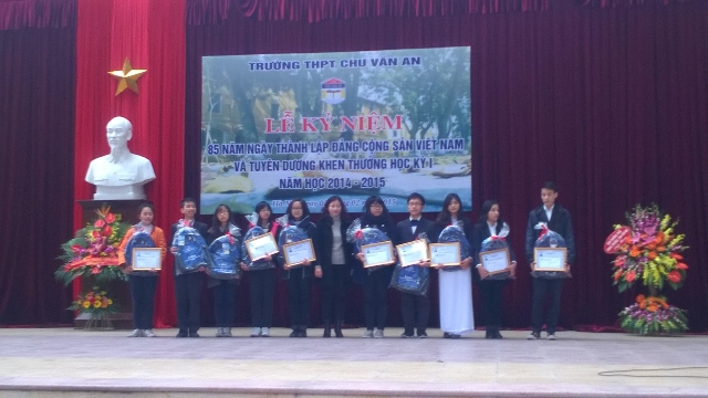 TS.Trần Thị Hồng Việt- Trưởng ban Đào tạo Đại học trao học bổng cho học sinh xuất sắc trường THPT Chu Văn An