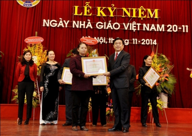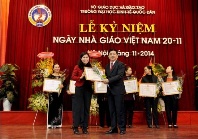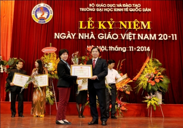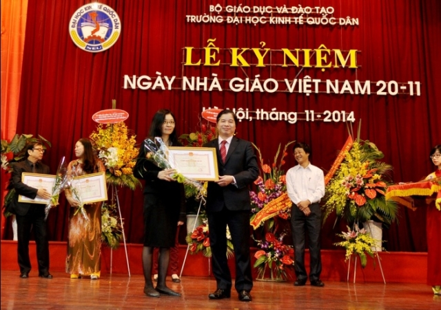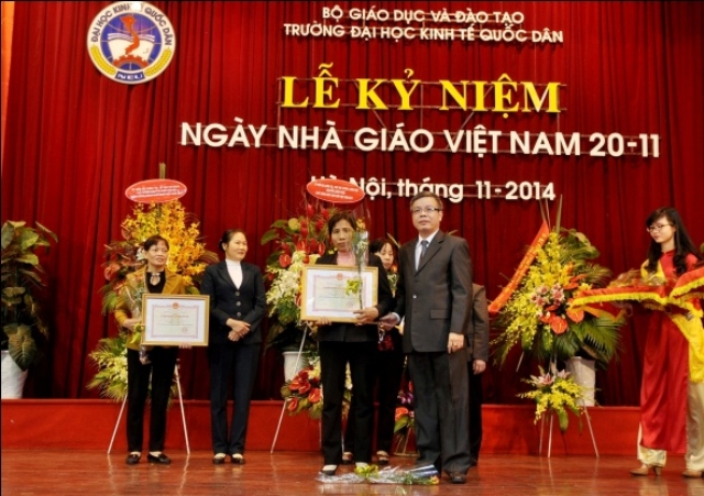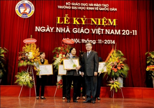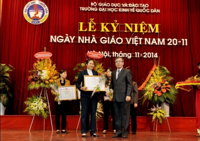 Ngày 19 tháng 11 năm 2014, tại Hội trường A, trường Đại học Kinh tế Quốc dân đã long trọng tổ chức Lễ kỷ niệm ngày nhà giáo Việt Nam 20 – 11 và công bố Quyết định của Chủ tịch nước phong tặng danh hiệu Nhà giáo Ưu tú cho 10 Nhà giáo của trường; Quyết định về việc tặng thưởng Huân chương Lao động Hạng Ba của Chủ tịch nước cho 03 Nhà giáo; Quyết định tặng Bằng khen của Thủ tướng Chính phủ cho 11 Nhà giáo và các cán bộ, viên chức được trao kỷ niệm chương vì sự nghiệp giáo dục, sau đây là hình ảnh các Nhà giáo đón nhận danh hiệu.
