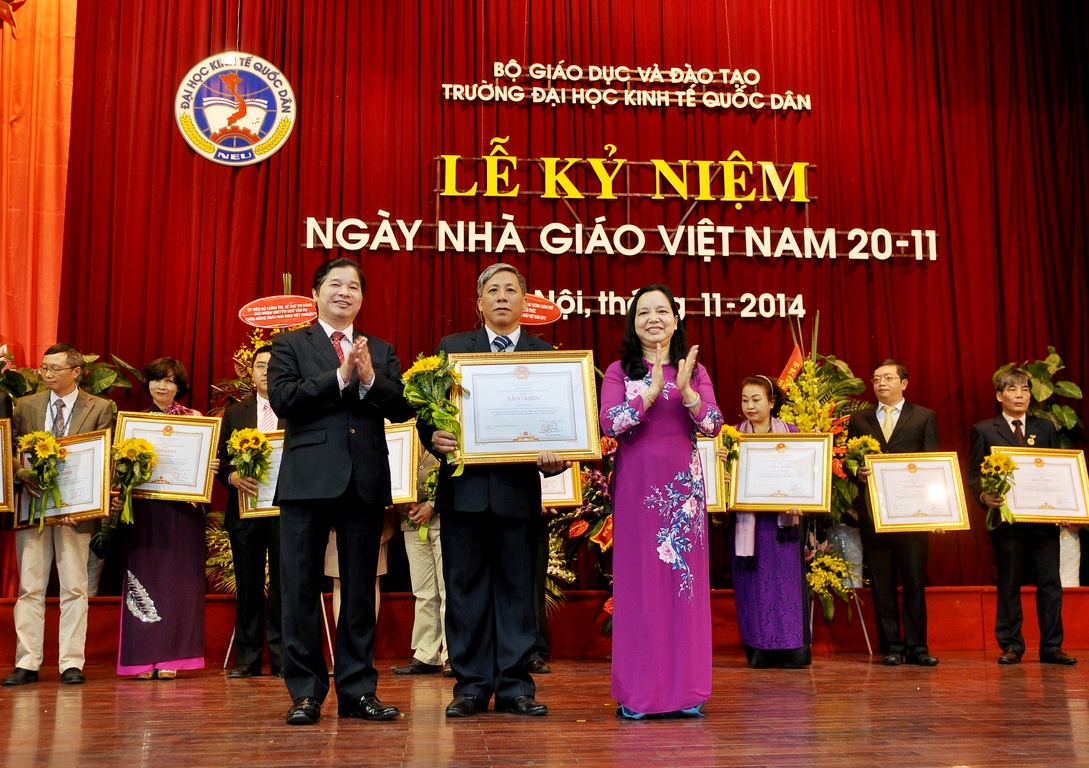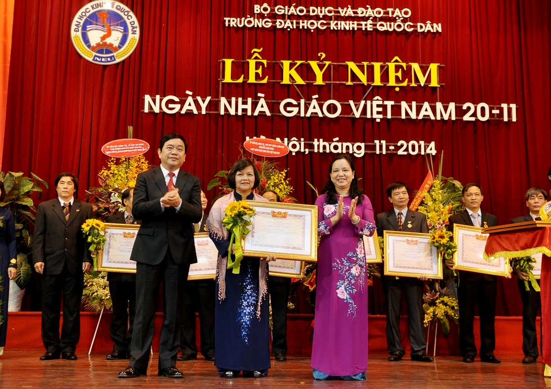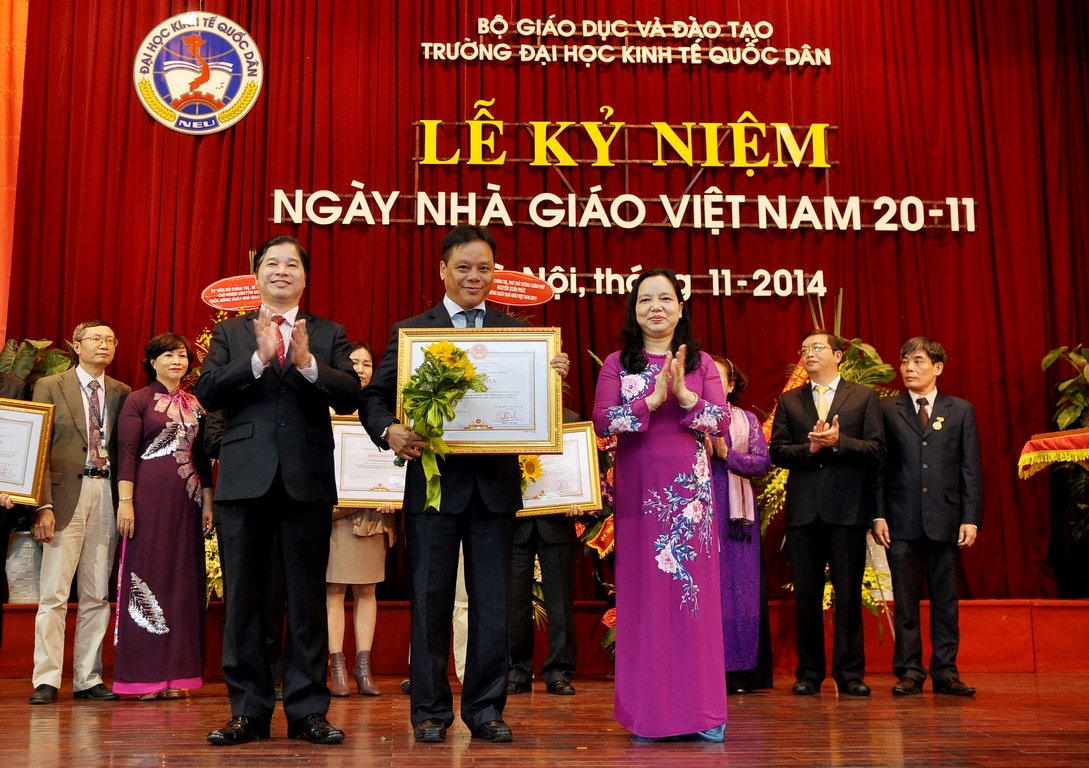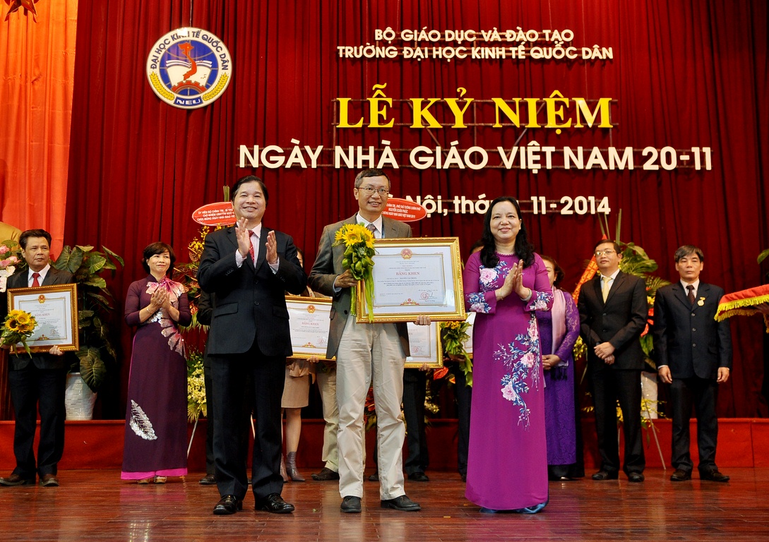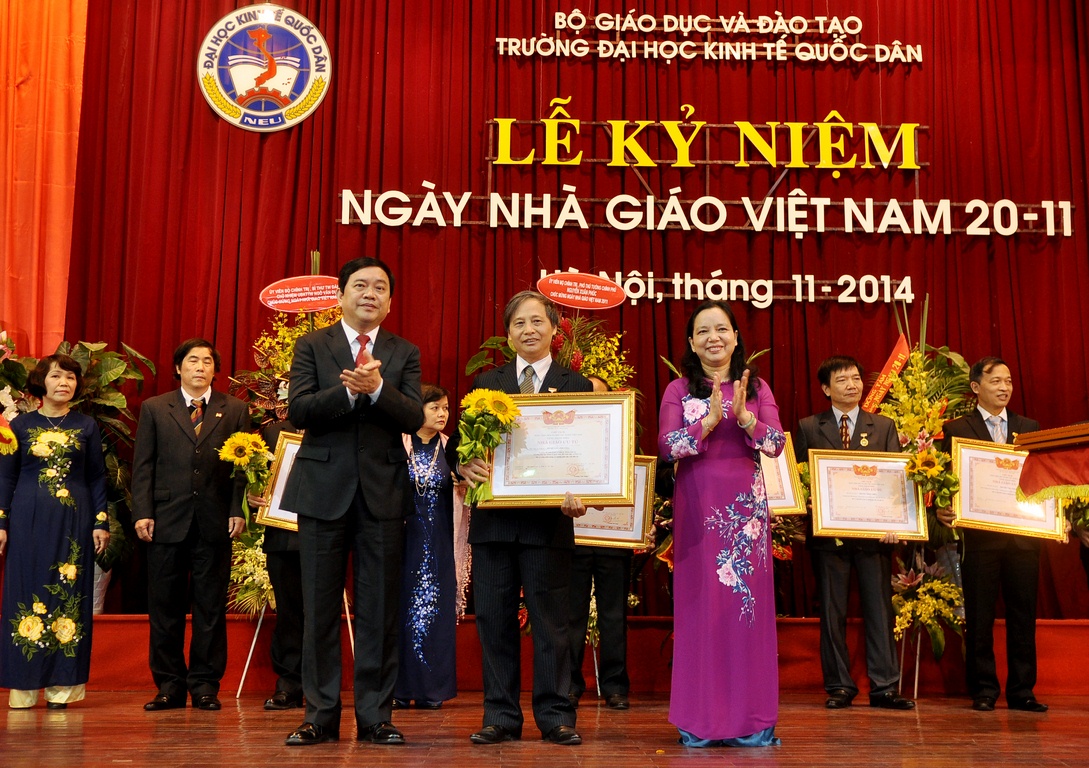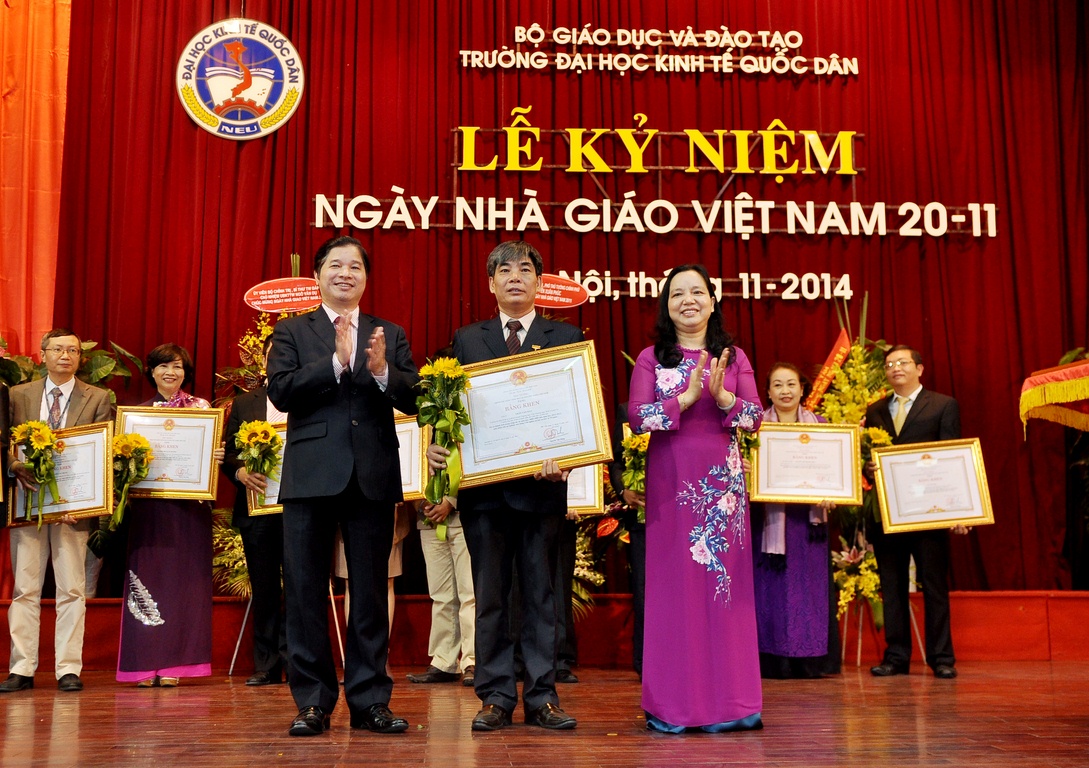 Ngày 19 tháng 11 năm 2014, tại Hội trường A, trường Đại học Kinh tế Quốc dân đã long trọng tổ chức Lễ kỷ niệm ngày nhà giáo Việt Nam 20 – 11 và công bố Quyết định của Chủ tịch nước phong tặng danh hiệu Nhà giáo Ưu tú cho 10 Nhà giáo của trường; Quyết định về việc tặng thưởng Huân chương Lao động Hạng Ba của Chủ tịch nước cho 03 Nhà giáo; Quyết định tặng Bằng khen của Thủ tướng Chính phủ cho 11 Nhà giáo và các cán bộ, viên chức được trao kỷ niệm chương vì sự nghiệp giáo dục, sau đây là hình ảnh các Nhà giáo đón nhận danh hiệu.