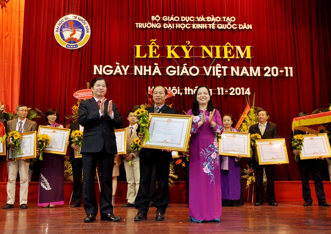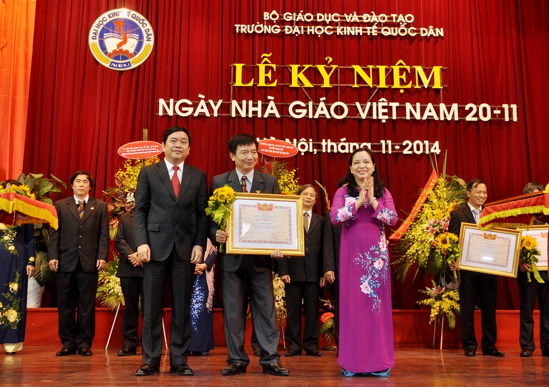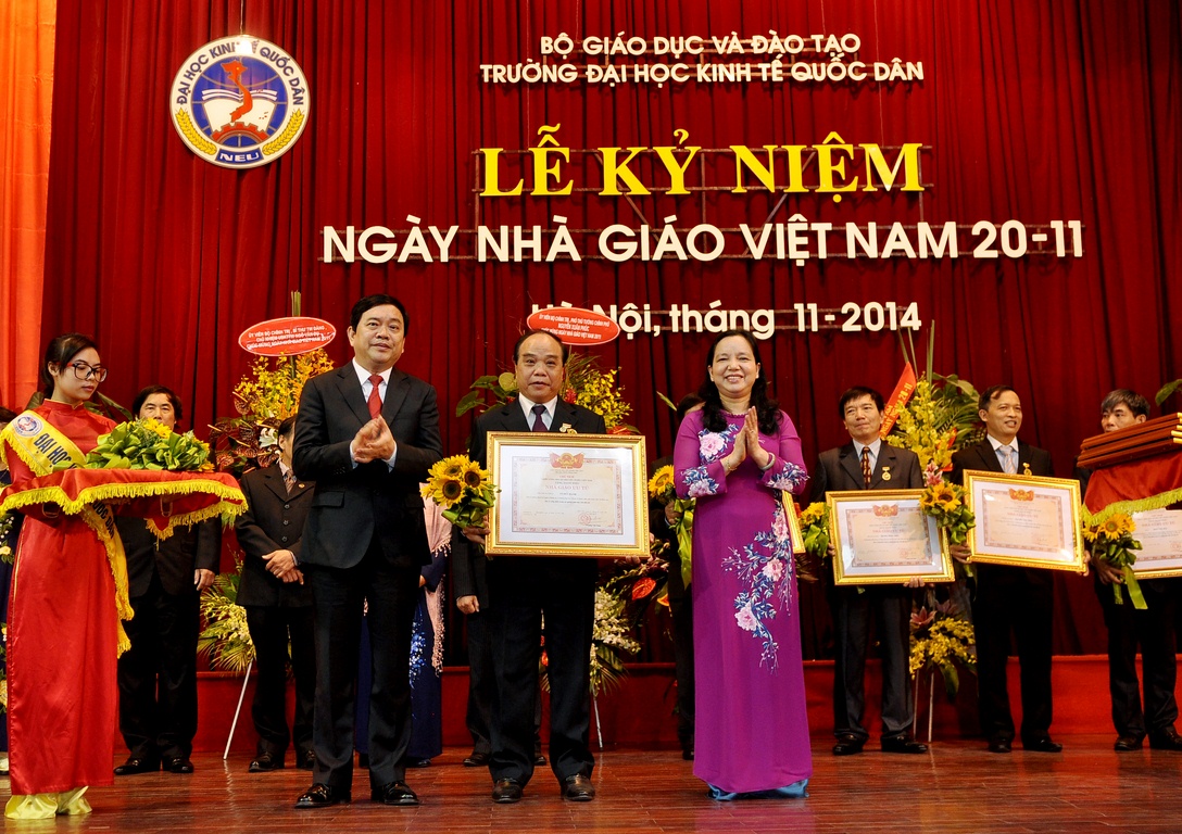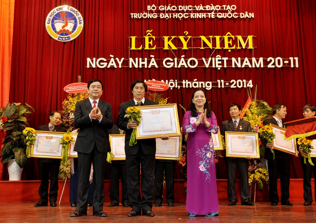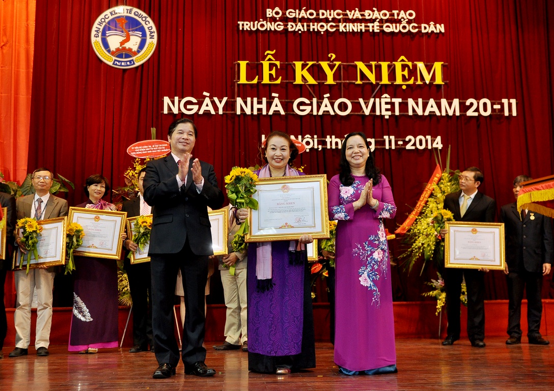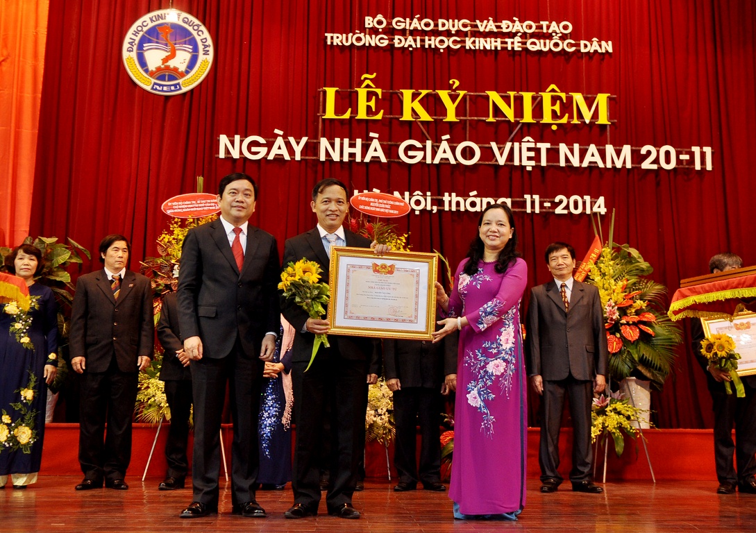 Ngày 19 tháng 11 năm 2014, tại Hội trường A, trường Đại học Kinh tế Quốc dân đã long trọng tổ chức Lễ kỷ niệm ngày nhà giáo Việt Nam 20 – 11 và công bố Quyết định của Chủ tịch nước phong tặng danh hiệu Nhà giáo Ưu tú cho 10 Nhà giáo của trường; Quyết định về việc tặng thưởng Huân chương Lao động Hạng Ba của Chủ tịch nước cho 03 Nhà giáo; Quyết định tặng Bằng khen của Thủ tướng Chính phủ cho 11 Nhà giáo và các cán bộ, viên chức được trao kỷ niệm chương vì sự nghiệp giáo dục, sau đây là hình ảnh các Nhà giáo đón nhận danh hiệu.