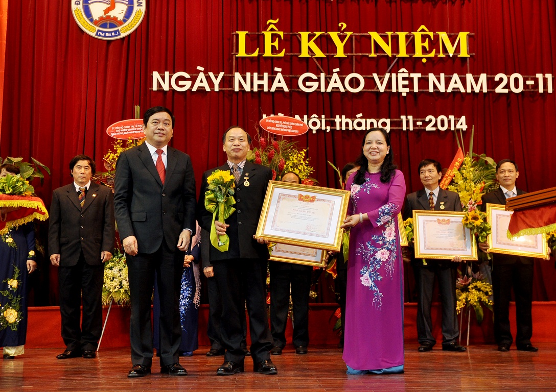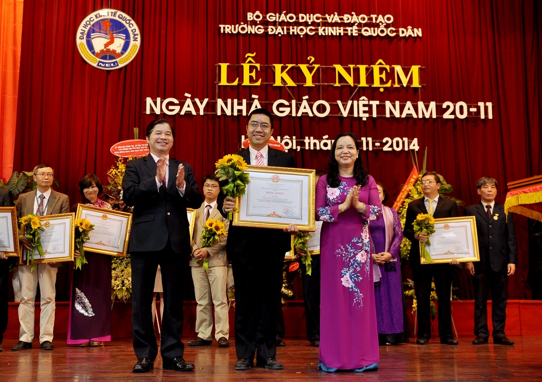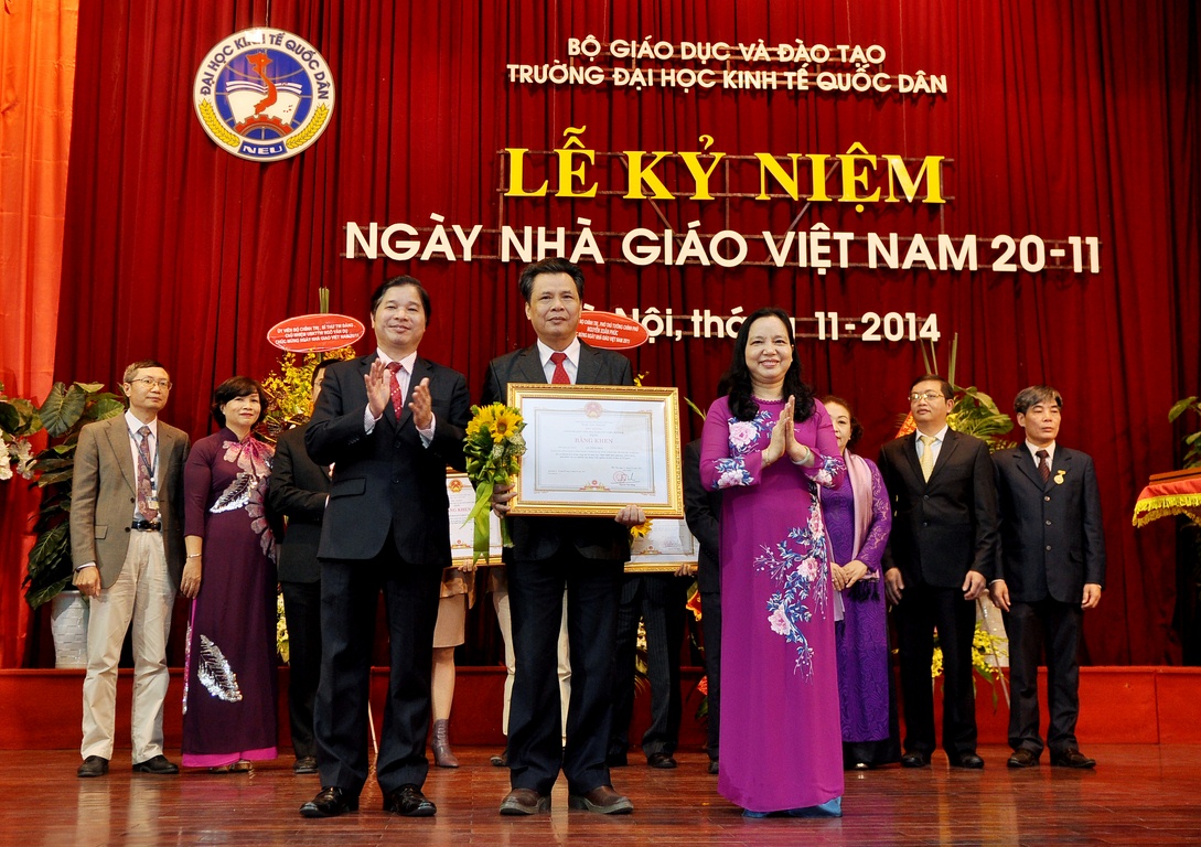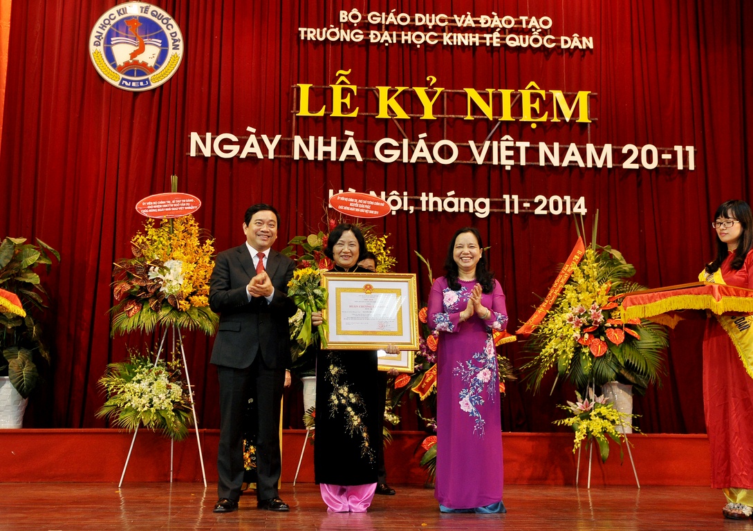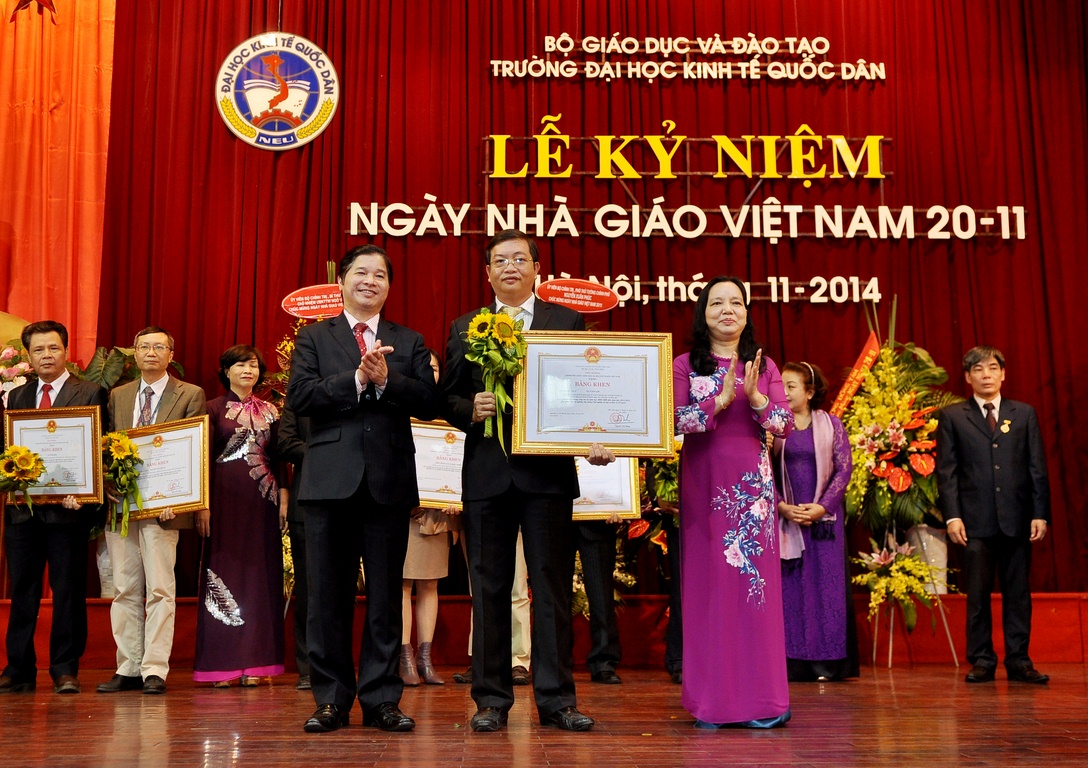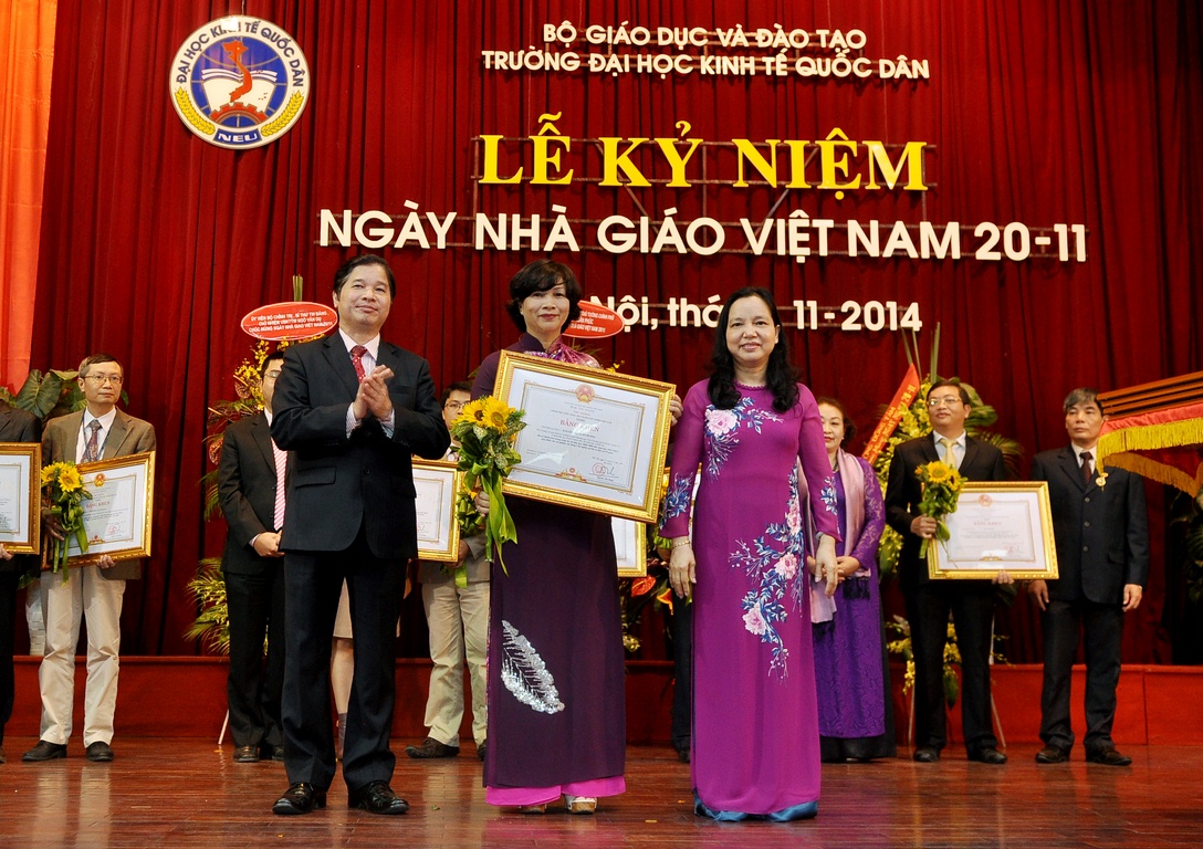 Ngày 19 tháng 11 năm 2014, tại Hội trường A, trường Đại học Kinh tế Quốc dân đã long trọng tổ chức Lễ kỷ niệm ngày nhà giáo Việt Nam 20 – 11 và công bố Quyết định của Chủ tịch nước phong tặng danh hiệu Nhà giáo Ưu tú cho 10 Nhà giáo của trường; Quyết định về việc tặng thưởng Huân chương Lao động Hạng Ba của Chủ tịch nước cho 03 Nhà giáo; Quyết định tặng Bằng khen của Thủ tướng Chính phủ cho 11 Nhà giáo và các cán bộ, viên chức được trao kỷ niệm chương vì sự nghiệp giáo dục, sau đây là hình ảnh các Nhà giáo đón nhận danh hiệu.