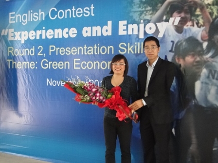 TS Phạm Thị Thanh Thùy – Trưởng bộ môn Tiếng Anh thương mại Khoa ngoại kinh tế thay mặt Ban Giám khảo nhận hoa từ Ban tổ chức