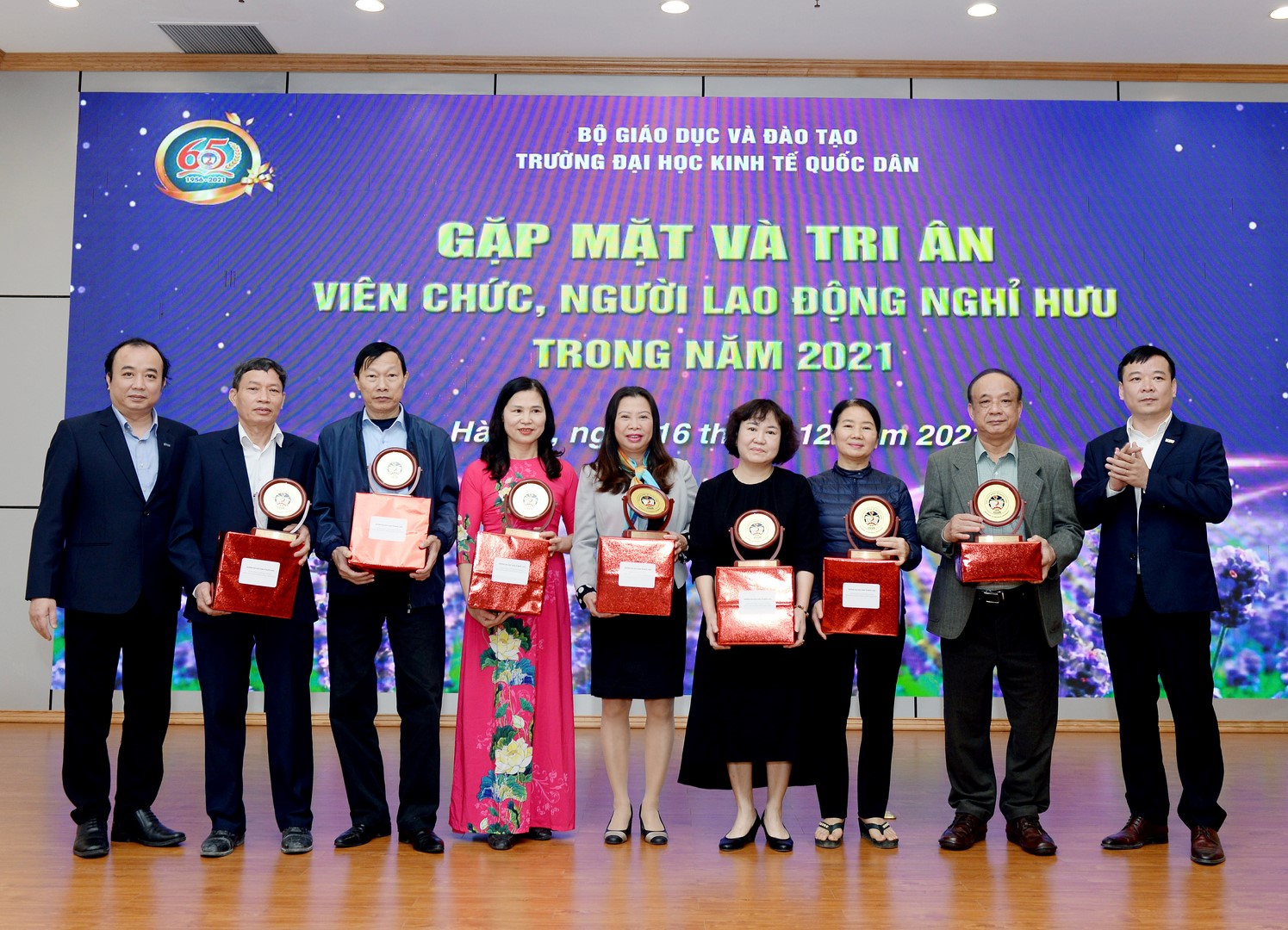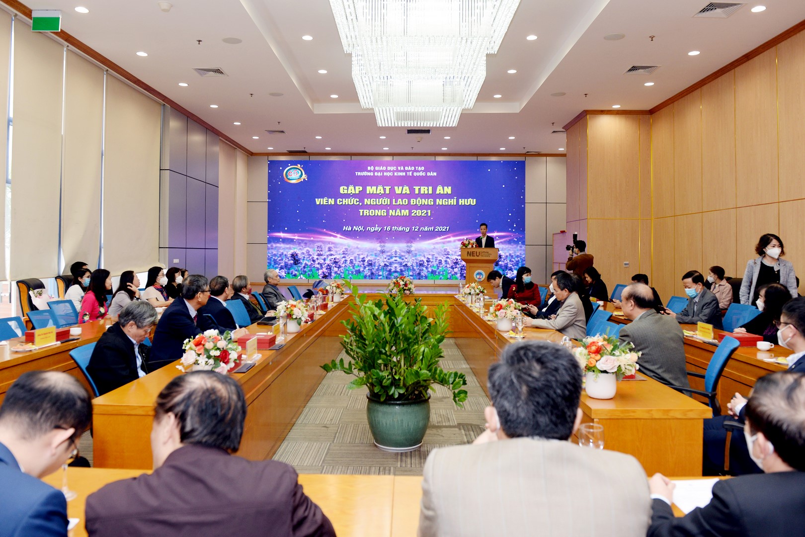 Trong tiết trời se lạnh của những ngày cuối năm, sáng ngày 16/12/2021, Trường Đại học Kinh tế Quốc dân đã tổ chức chương trình gặp mặt nhằm tri ân viên chức, người lao động nghỉ hưu năm 2021.
