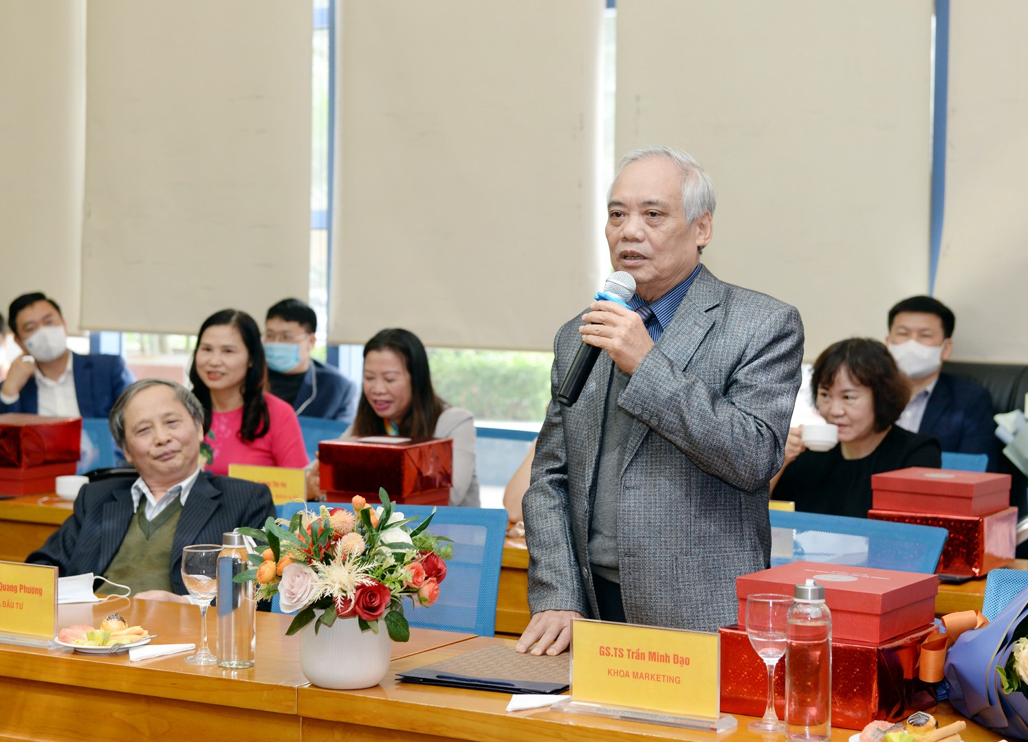 Xúc động trước những tình cảm và sự quan tâm của Nhà trường, GS.TS Trần Minh Đạo – Giảng viên cao cấp Khoa Marketing bày tỏ sự biết ơn chân thành tới các thế hệ lãnh đạo Trường Đại học Kinh tế Quốc dân, nơi hơn 40 năm qua các thầy cô đã luôn tận tâm làm việc và cống hiến hết mình cho sự phát triển của Trường. Hình ảnh Đại học Kinh tế Quốc dân sẽ luôn được khắc ghi trong trái tim và trí óc của mỗi thầy cô. Tạm chia tay “ngôi nhà thứ hai” tuy không còn thường xuyên gặp gỡ nhưng các thầy cô vẫn sẽ luôn dõi theo, ủng hộ Nhà trường.